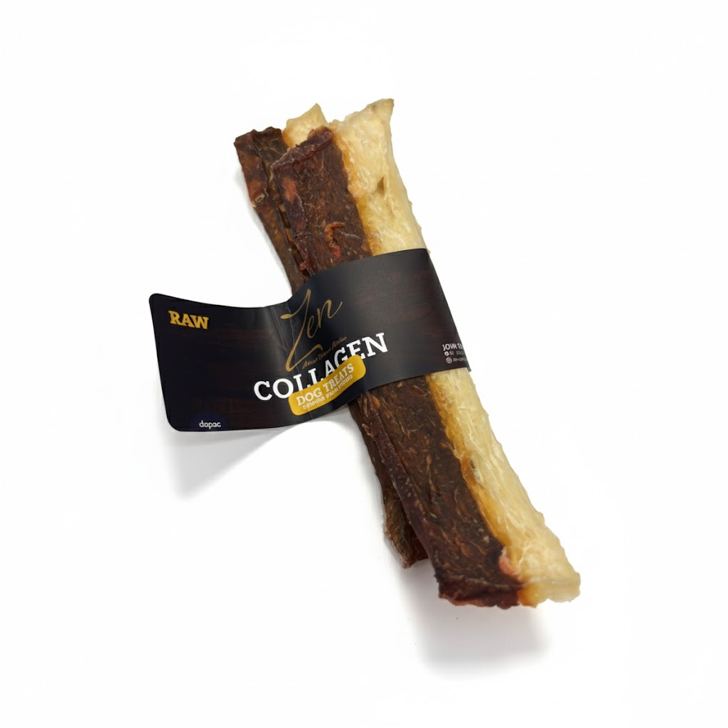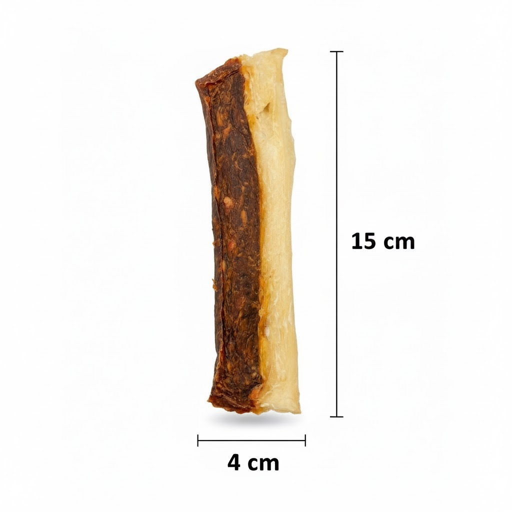 Este snack de doble capa combina los beneficios estructurales del colágeno bovino con la irresistible palatabilidad del pollo. Diseñado para perros que disfrutan de una masticación prolongada, este palito no solo entretiene, sino que cuida activamente la salud física y mental de tu compañero.